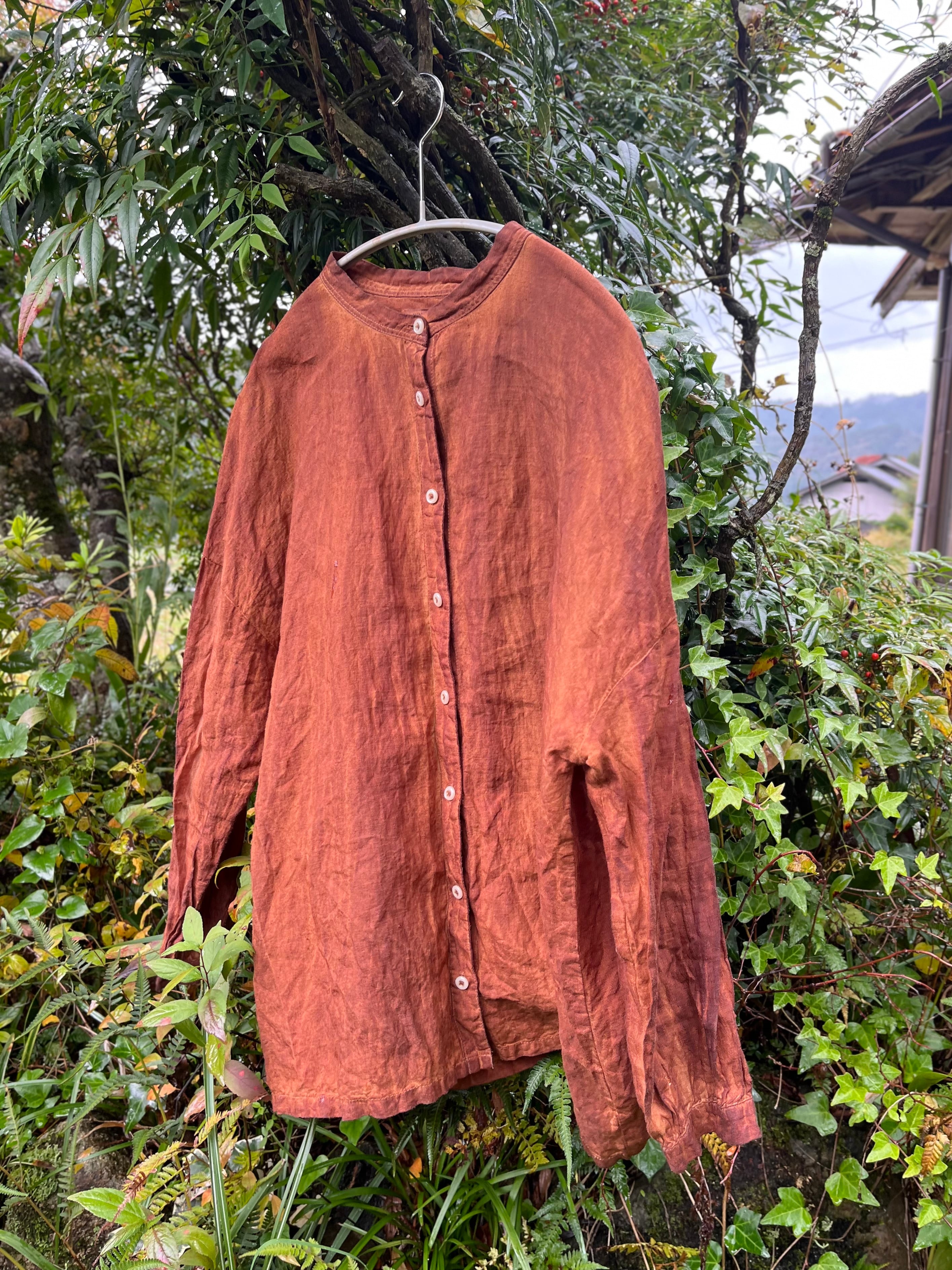 「柿渋染め (濃色) + 鉄媒染」